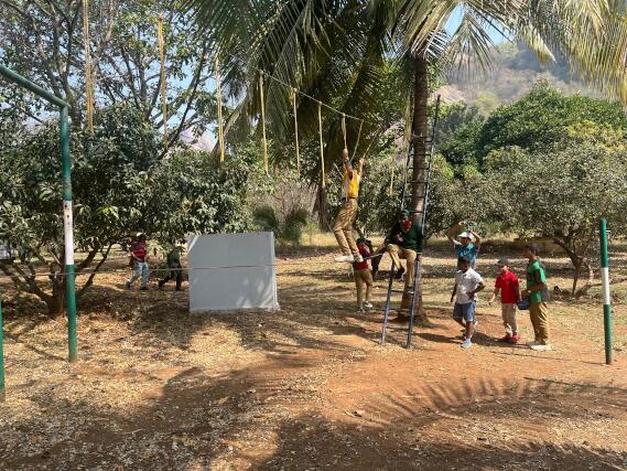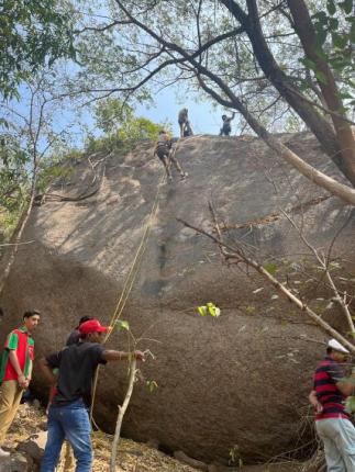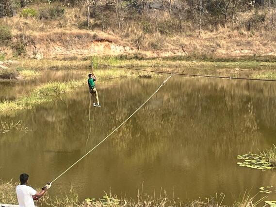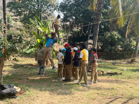 We arrived at the camp spot at 10:00 AM and were welcomed with refreshments—vada and a cool welcome drink. After a brief introduction to the day’s activities, the students were divided into four groups and sent to different venues for various adventure challenges, which included: