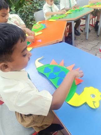 Meanwhile, our budding artists in Upper Kindergarten brought their favourite dinosaurs to life with great enthusiasm. From meticulously sticking spikes to adorning them with heart-shaped spots, their attention to detail and joy in creating were evident in every masterpiece.