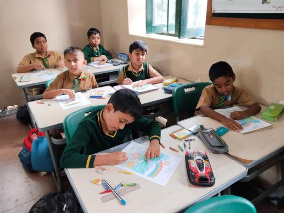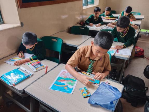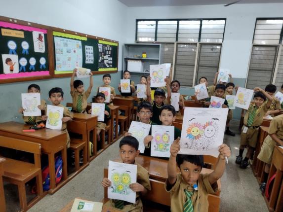 Each student received a printed coloring sheet and participated with boundless enthusiasm, showcasing their unique artistic flair.