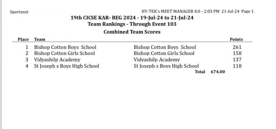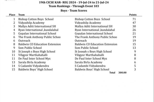 Bishop Cotton Boys' School's swimming team emerged victorious at the 2024 CISCE Regional Swimming Competition, held at Amrita International Vidyalayam.