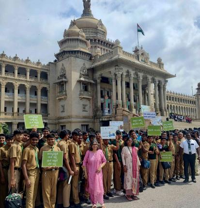 On 3rd July 2024, nearly 50 students from Std IX participated in a walkathon organized by the Government of Karnataka as part of the World Environment Day Celebrations and Vanamahotsava. The event brought together students from approximately 100 schools and colleges.