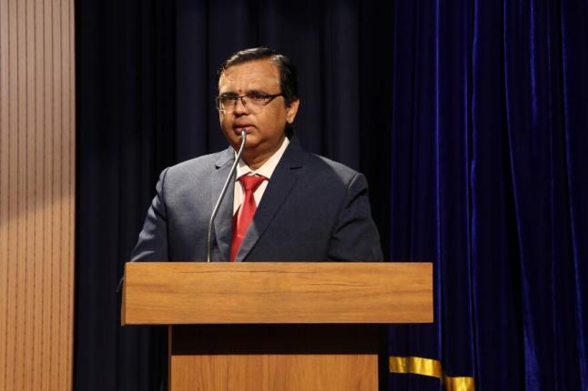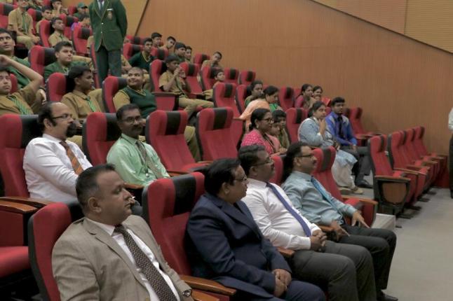 The Chief Guest, Mr. Narendra Kumar Sharma, was introduced by the compère, and a token of appreciation was presented to him as a gesture of respect. The event continued with speeches by the winners of the Hindi debate competition—Daksh A. Singhvi, Adway Singh, and Dhruv Jayaprakash Prabhu—who showcased their eloquence and depth of knowledge on their respective topics.