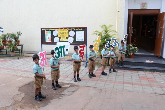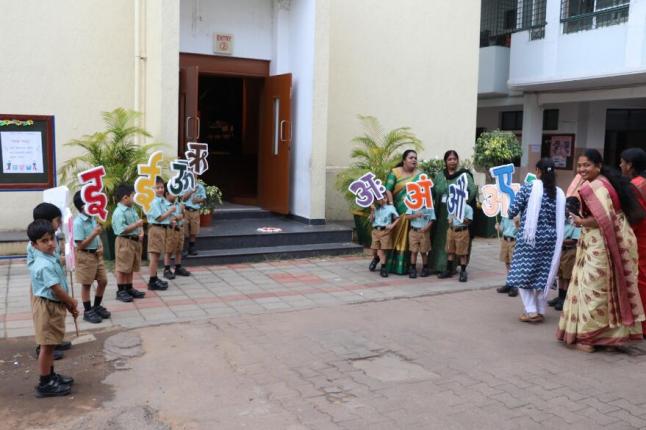 Mr. Sharma then delivered a thought-provoking speech, underscoring the role of Hindi in uniting the nation and encouraging students to embrace and celebrate the language. Following this, students from Standards 4 and 5 performed a vibrant group dance, which captivated the audience.