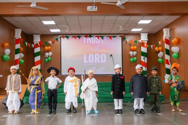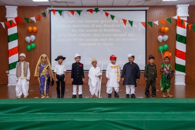 The freedom fighters, whose ideals were instrumental in securing our country’s independence, were not forgotten. A few children from Lower Kindergarten, dressed as eminent freedom fighters, captivated the audience as they took center stage to the beat of “Vande Mataram.”