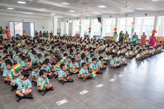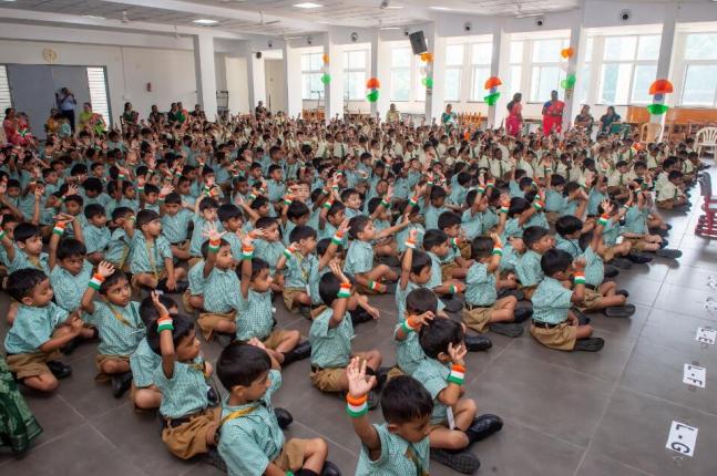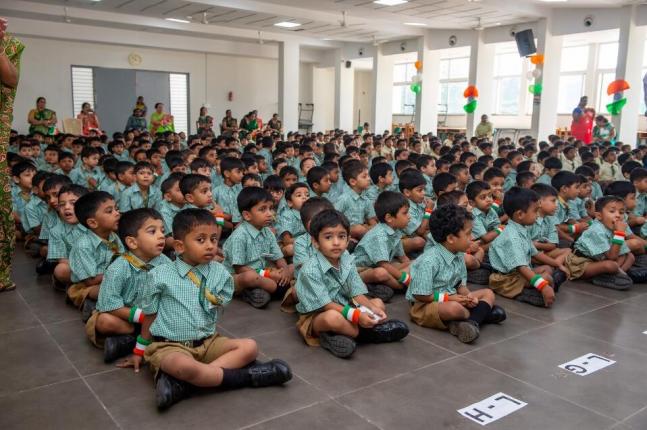 The mood was celebratory, and the air was thick with patriotic fervor as children cheerfully walked into the Sesquicentennial Hall, proudly donning tricolour wristbands.
