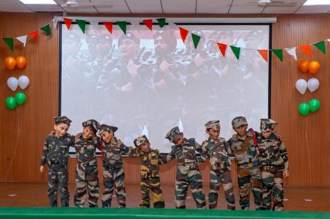 With the significance of the occasion now understood, it was time for some fun and entertainment. The students of Lower Kindergarten delivered a grand dance performance to the song “Phir Bhi Dil Hai Hindustani,” followed by an outstanding tribute from the Upper Kindergarten students to the resilient spirit of our soldiers.
