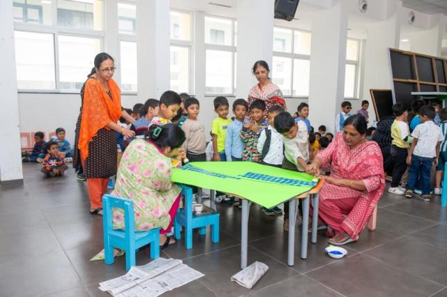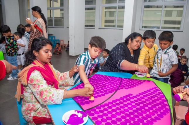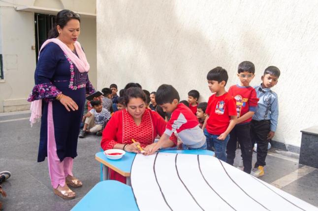 Meanwhile, the UKG children immersed themselves in a rainbow-themed activity, creating vibrant handprints. Each tiny hand, dipped in an array of colours, left a unique imprint—a stroke of joy and innocence. The resulting display of rainbows filled the room with cheerful energy and warmth.