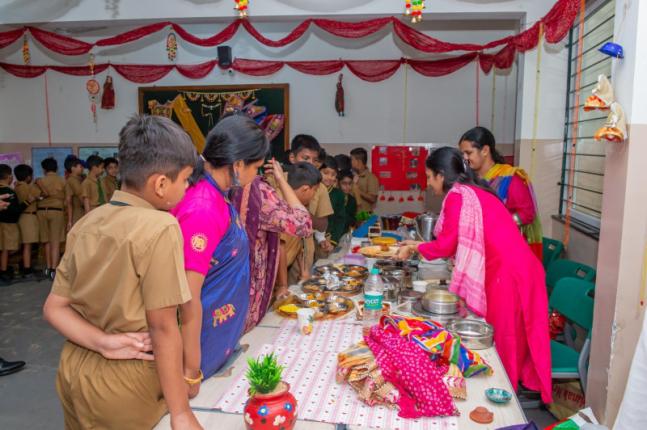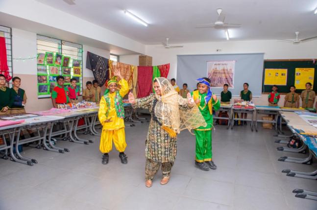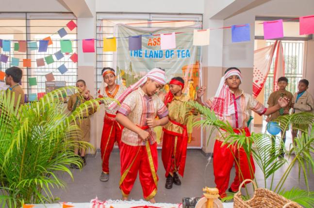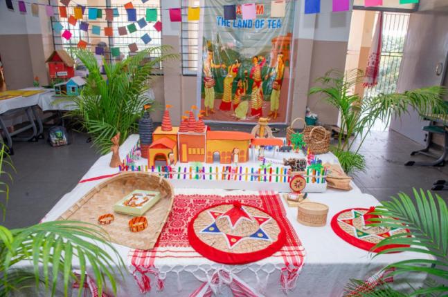 Spread across three floors and eighteen classrooms, the exhibition transformed learning spaces into immersive cultural hubs. Grade IV students showcased eight countries, while Grade V students presented eight Indian states, bringing their themes alive through models, banners, traditional attire, dances, skits, monuments, languages, and authentic cuisines. Visitors were transported to regions such as Sri Lanka, China, Nepal, Bhutan, Afghanistan, Pakistan, Myanmar, Bangladesh, Kerala, Tamil Nadu, Rajasthan, West Bengal, and beyond.