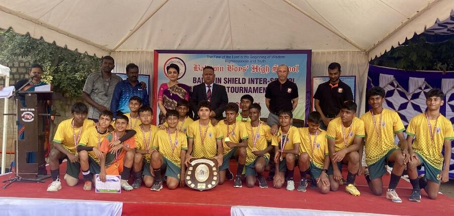 In a thrilling final at the Baldwin Shield Inter-School Football Tournament, Bishop Cotton Boys’ School emerged victorious in the Under-14 division, securing a narrow but decisive 1-0 win against St. Joseph’s. The team showcased remarkable skill and determination, with each player contributing to this hard-earned victory. The winning goal was scored by Dhan Mohammed. He also lifted the golden boot award.