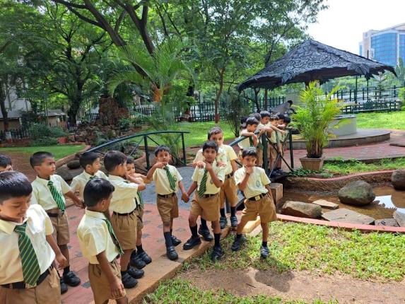 From the swimming pool to the auditorium, infirmary, cafeteria, and chapel—each stop sparked wonder and joy. The little ones were amazed by the boarding house, dining hall, basketball court, and library, and were especially thrilled to see the majestic models of the INS Vikrant and INS Delhi at Warden’s Park.