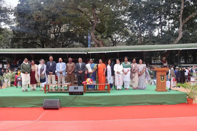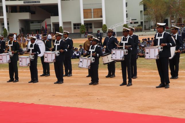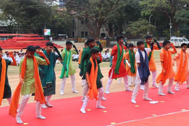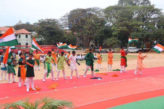 The programme commenced with the unfurling of the National Flag by the Principal, followed by the National Pledge and an impressive march past by the NCC Army, Air and Navy platoons, along with other uniformed services including Scouts, SAFE, Cubs and NSS. The National Salute was received by the Principal.