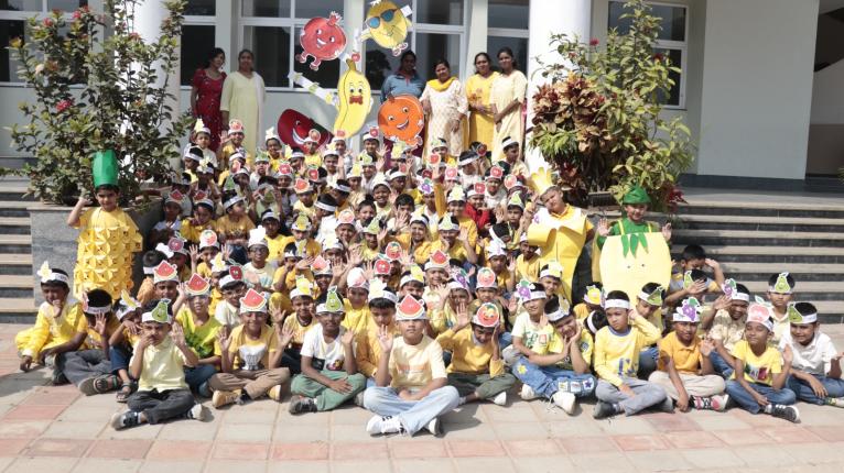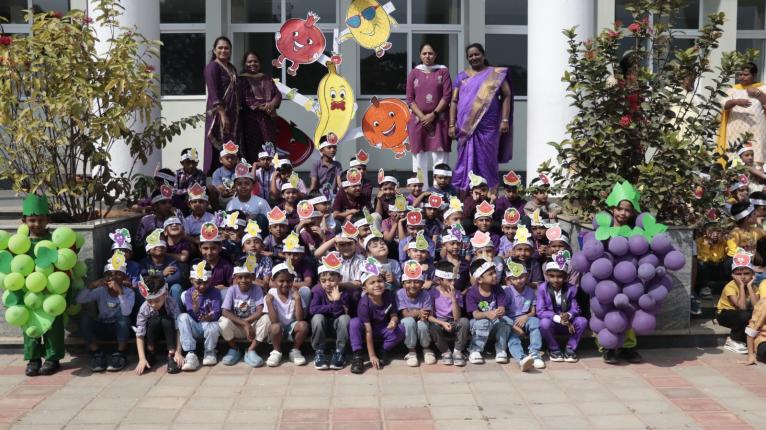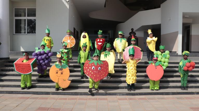 Fruit Frenzy Day was joyfully celebrated at the Kindergarten, transforming the campus into a lively and colourful space as children arrived in bright casuals with fruit-themed headbands, each class proudly representing a different fruit.