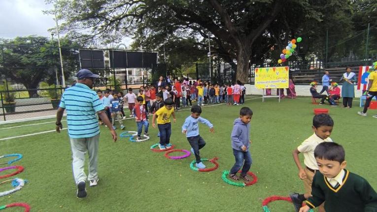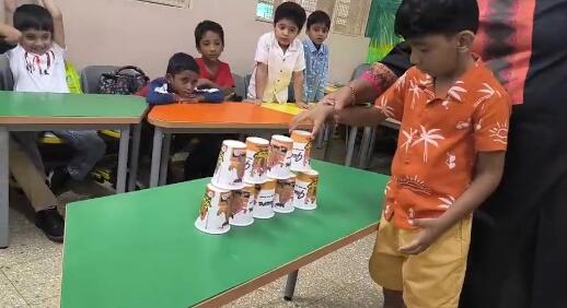 The fun didn’t stop there! The corridors and classrooms turned into zones of excitement—every corner offering a new surprise. From “feeding the clowns” and hopscotch, to hula hoops, cup pyramids, balancing acts, and thrilling relays, each activity was designed to spark joy, teamwork, and plenty of giggles.