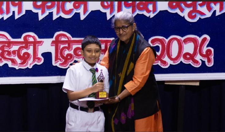 The Hindi Diwas celebration was held in the Mini Auditorium with great enthusiasm and active participation from students and staff. The occasion was graced by the School Treasurer, the Vice Principal, and the Chief Guest, Dr. Mythili Rao.