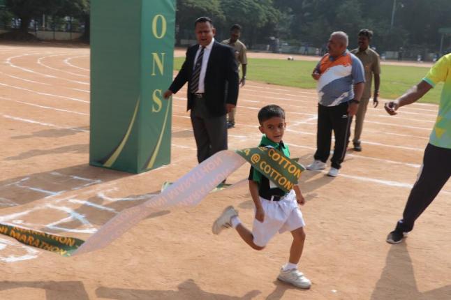 The event was flagged off by our Principal, and the young Cottonians, proudly wearing their house colours, began with a spirited “On your marks, get set, go!” The race distances were set according to age: