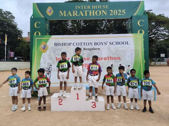 Bishop Cotton Boys’ School hosted the much-awaited Inter-House Mini Marathon on 27th October 2025 at 9 a.m. The event was flagged off by the Vice Principal, Mr. Anil Dutt. Students from Standards I to III, dressed in their vibrant house T-shirts, participated with great zeal and enthusiasm. The young Cottonians of Standard I ran a distance of 1 km, while those from Standards II and III covered 2 km.