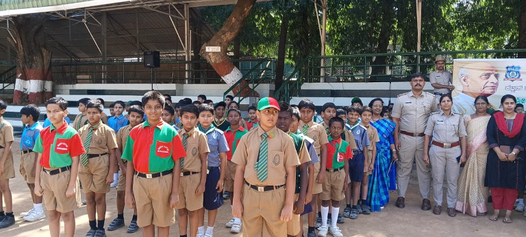 A team of officers from the Cubbon Park Police Station led the awareness session, interacting with students of Grades IV and V about Sardar Patel’s vital role in unifying India after Independence.
