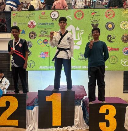 We are proud to announce that Daksh A Singhvi of Bishop Cotton Boys’ School has once again brought laurels to the institution by securing the Gold Medal in the Bangalore District Taekwondo Championship 2025 in the Junior Category.