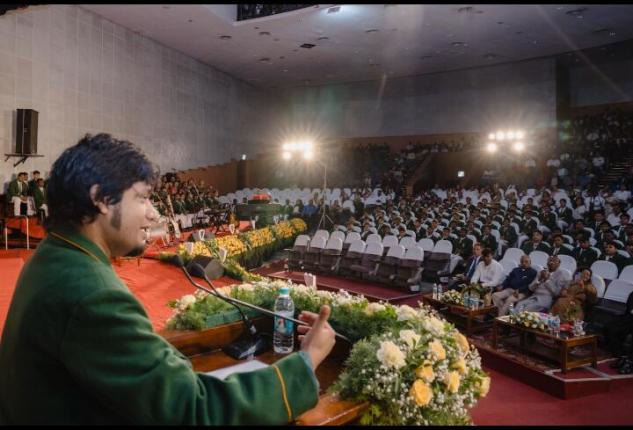In his address, Mr. Varun Agarwal shared his experiences and nostalgic memories from his time at Cottons. He emphasized how the institution played a pivotal role in shaping his successful career, stating that the school's motto provided guidance in every aspect of his life. Mr. Agarwal candidly discussed the societal stigmas surrounding career paths in India and his personal struggles in breaking these norms to achieve fulfilment in his chosen field. His speech, infused with humour and wisdom, was both captivating and inspiring to the young leaders.