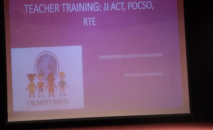 The session was led by Mrs. Sujatha Suresh, a noted child rights activist, who shared her expertise on safeguarding practices and legal responsibilities within educational institutions. She elaborated on key provisions of both Acts, emphasising preventive measures, early identification of concerns, and mandatory reporting protocols.