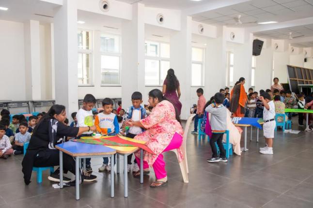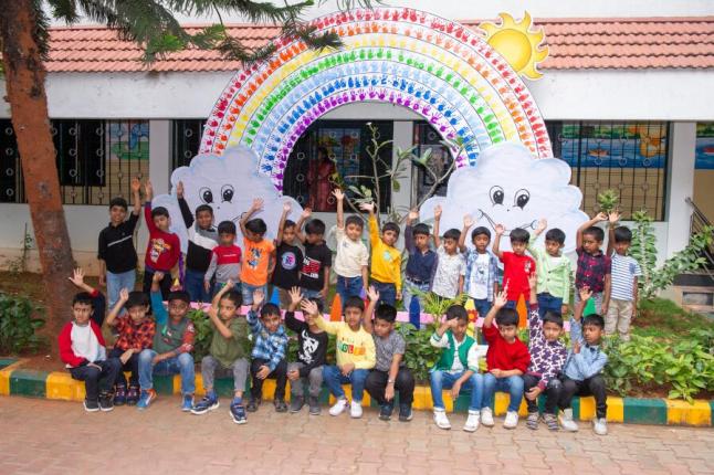Meanwhile, the UKG children immersed themselves in a rainbow-themed activity, creating vibrant handprints. Each tiny hand, dipped in an array of colours, left a unique imprint—a stroke of joy and innocence. The resulting display of rainbows filled the room with cheerful energy and warmth.